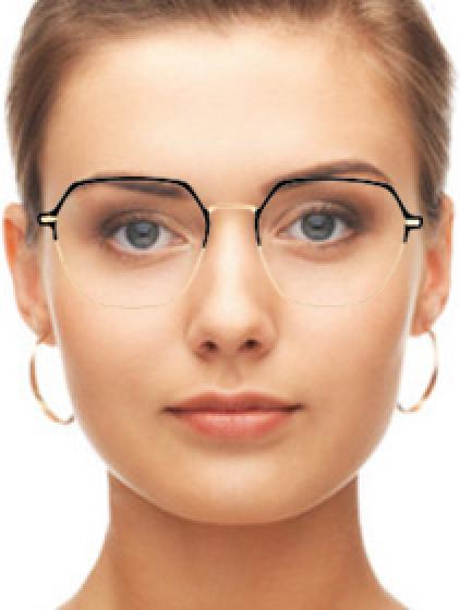 Contemporary hexagon irregular shaped high quality metal glasses with adjustable silicone nose pads. Available in Black & Gold, Black & Silver, Silver and Gold